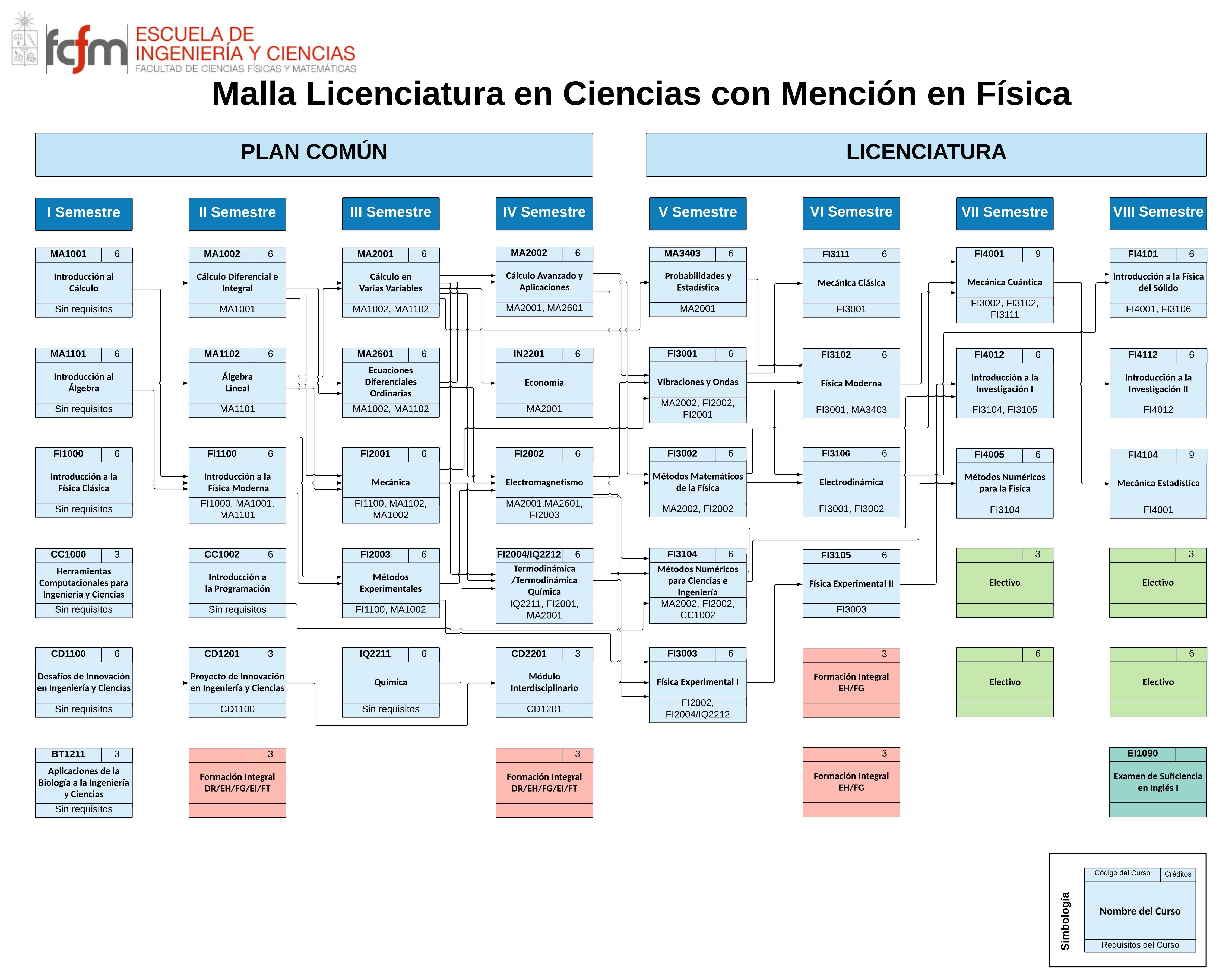 FI3002 | MÉTODOS MATEMÁTICOS DE LA FÍSICA | Especializada | 6 |